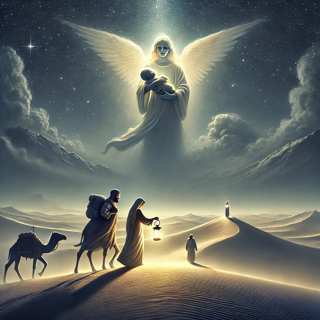 “Setelah orang-orang Majus itu pergi, lihatlah, malaikat Tuhan tampak kepada Yusuf dalam mimpi dan berkata, “Bangunlah, bawa Anak itu bersama ibu-Nya dan larilah ke Mesir. Tinggallah di sana sampai Aku berbicara kepadamu karena Herodes ingin mencari Anak itu untuk membinasakan-Nya.” Kemudian, Yusuf bangun dan membawa Anak itu dengan ibu-Nya pada waktu malam untuk pergi jauh…